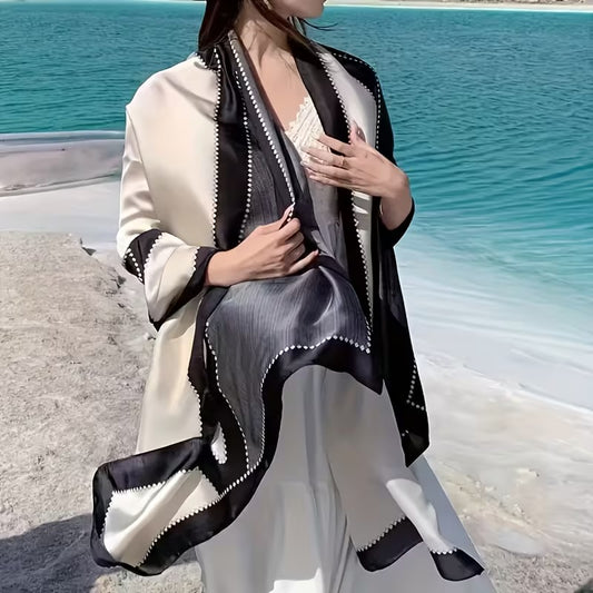 Elegant Rose & Vine Print Two-Tone Cozy Wrap Shawl