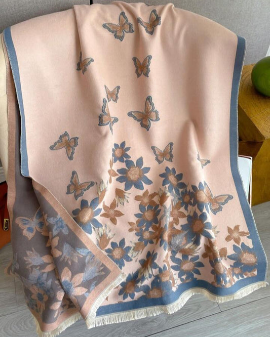 Blush Butterfly & Floral Reversible Cashmere-Feel Wrap