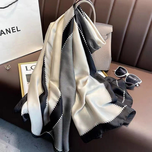Elegant Beige and Cream Cashmere Blend Monogram Wrap Shawl
