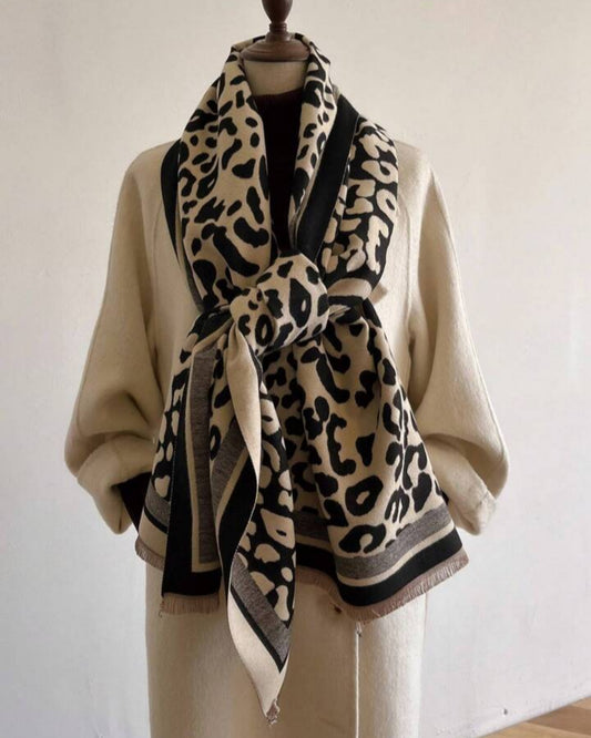 Dual-Sided Pink & Grey Leopard Print Scarf and Shawl