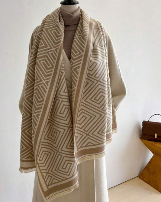Designer-Inspired Jacquard Knit Shawl with Greek Key Pattern