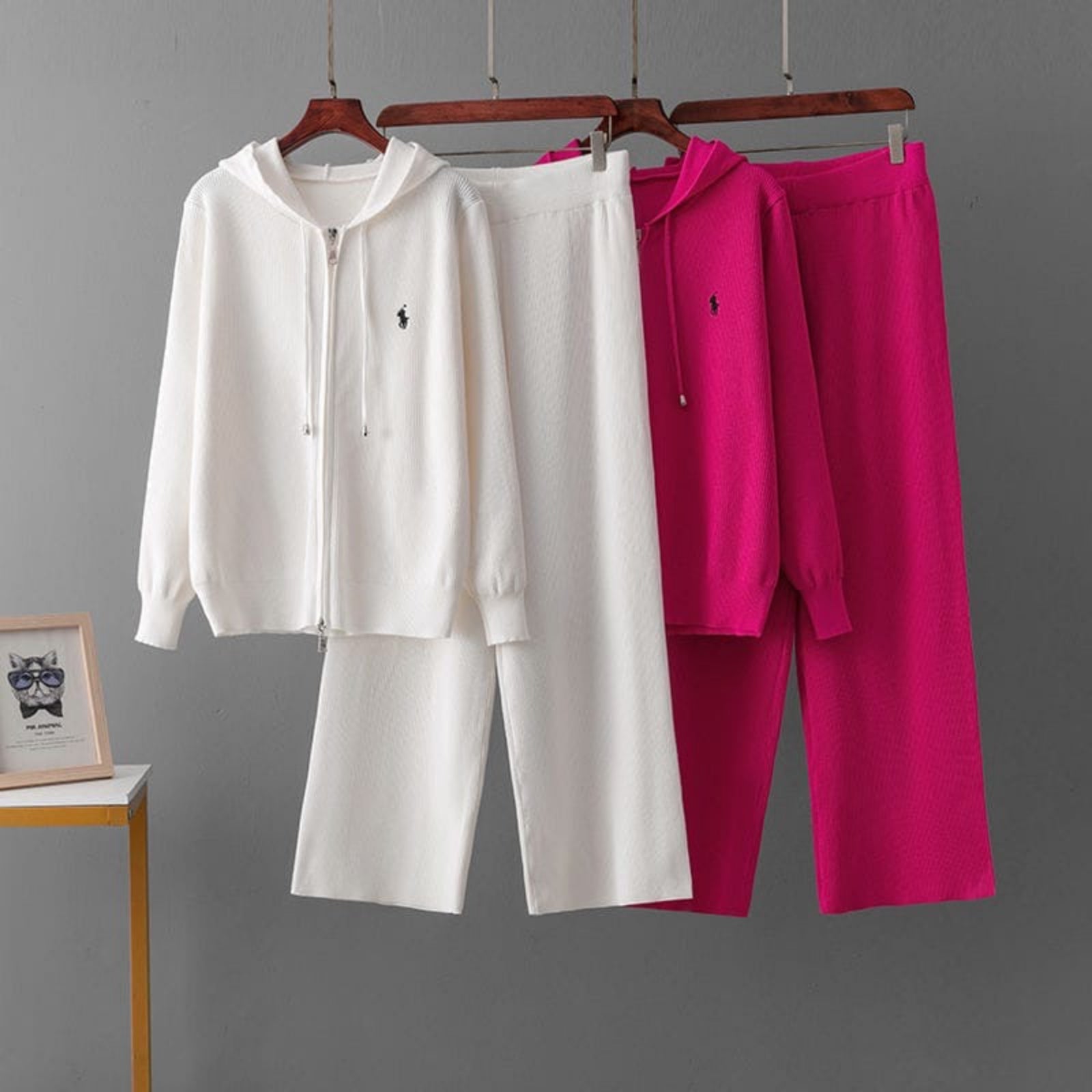 Elevate your relaxation with our premium Chic Ribbed Knit Hooded Leisure Suit. Featuring a zip-up hoodie and high-waisted wide-leg pants. Available in four chic colors. Shop comfort & style!