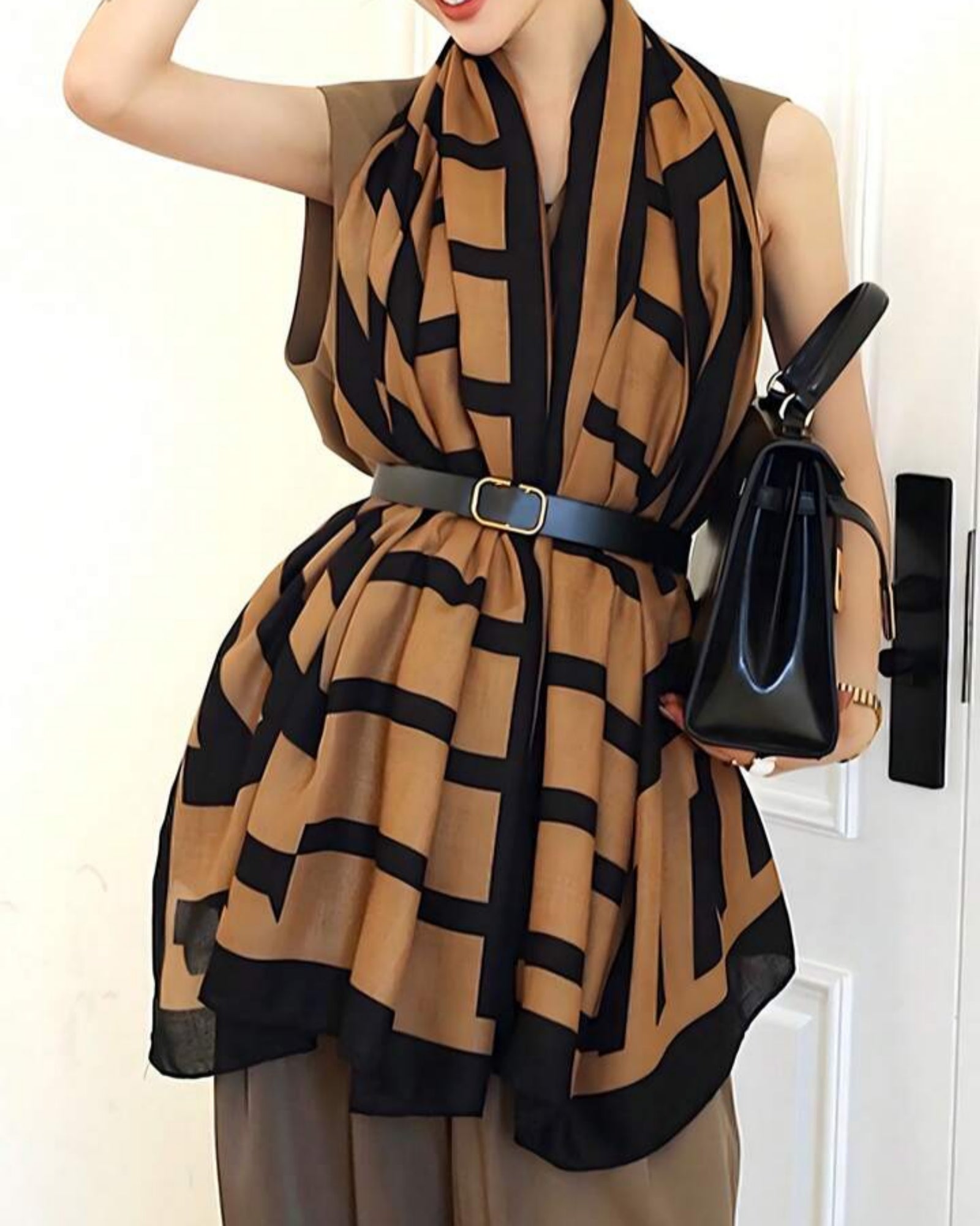 Crafted from premium breathable cotton, it is perfect for year-round wear, offering both comfort and style. The striking geometric stripes and structured design recall the grandeur of historic monuments, making it a statement accessory for modern women who appreciate timeless fashion with a story.