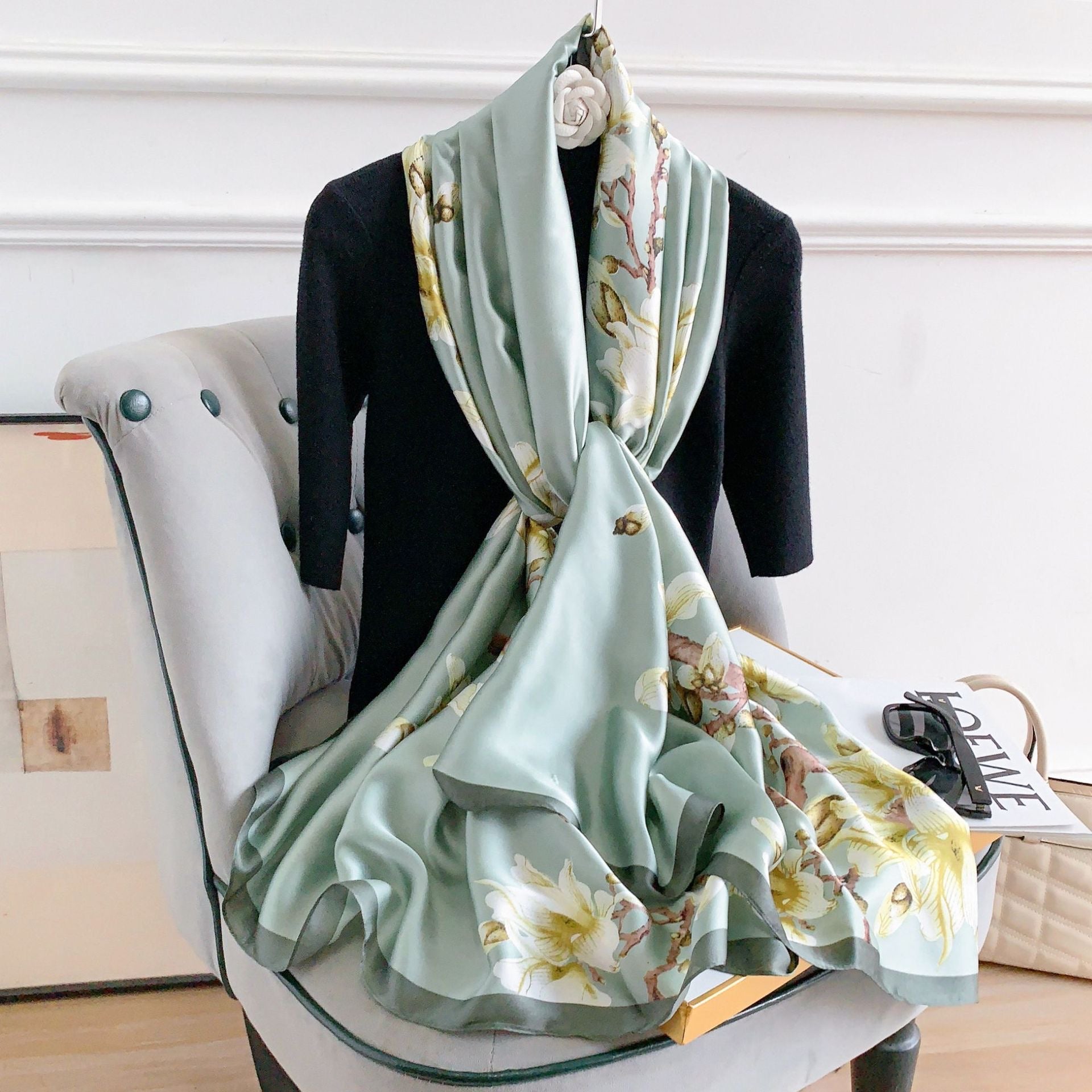 Wrap yourself in the timeless beauty of our Sage Magnolia Bloom Stole, designed to bring elegance and charm to every occasion. Featuring a soft sage green base adorned with delicate magnolia blossoms, this stole radiates freshness and sophistication. Made from premium polyester with a silky-smooth finish, it offers a lightweight drape thatโs perfect for year-round styling.