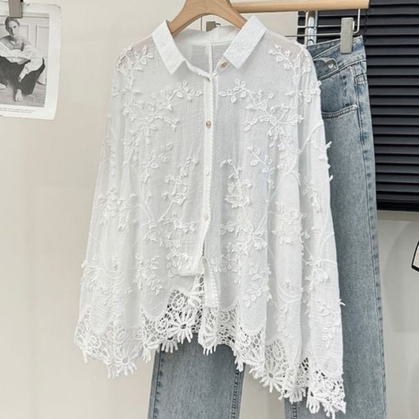 Elevate your style with this stunning white embroidered sheer shirt! Featuring delicate floral embroidery, a flowy silhouette, and a dreamy boho vibe, this lightweight piece is perfect for layering on vacations, brunch dates, or beach days. Shop now with COD & fast shipping!