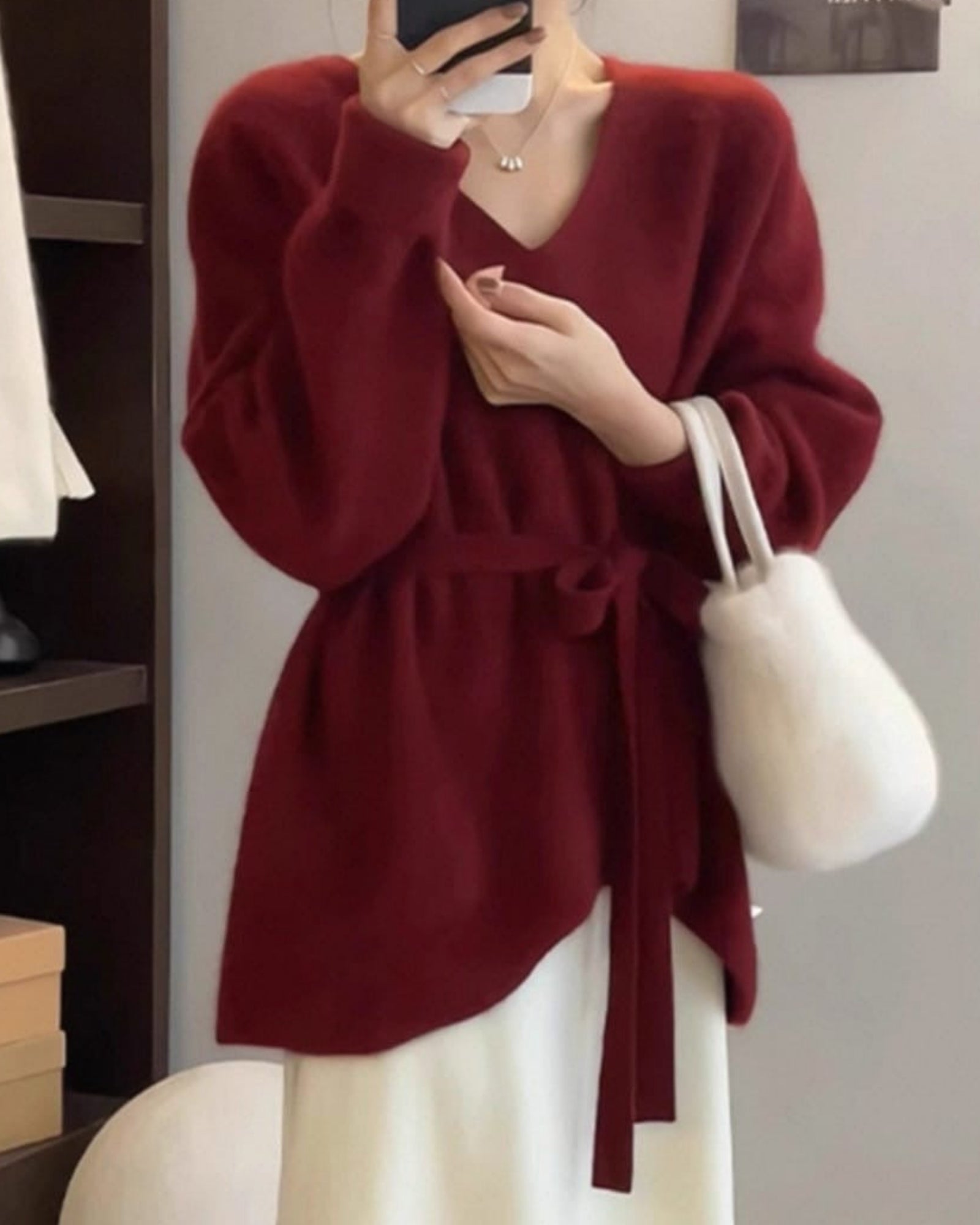 Chic Asymmetric Hem V-Neck Belted Sweater