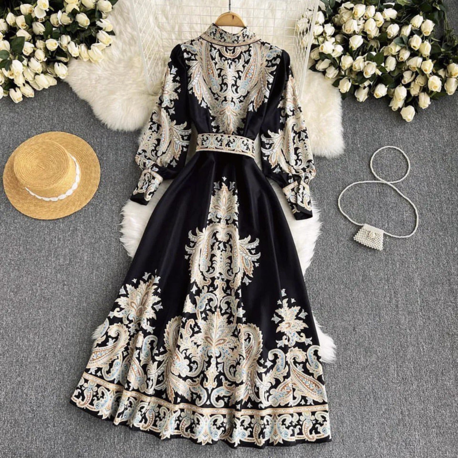 Unleash your inner vintage vibes with our Cocoshell Vintage Midi Dress. Featuring an abstract and eye-catching print, this dress will surely turn heads. Made with high-quality fabric, it offers both style and comfort. Perfect for any casual day out, it also comes with a belt for a more defined silhouette. Upgrade your wardrobe with this must-have dress.