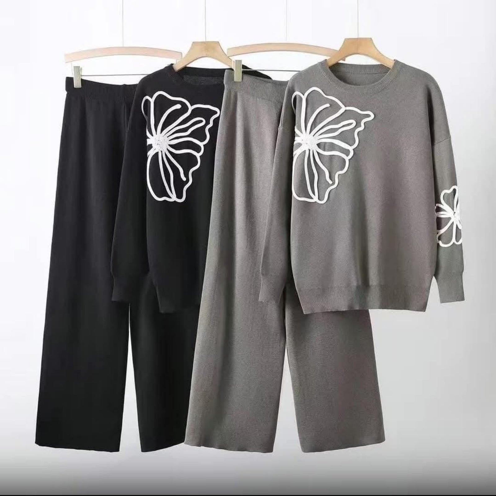 Elevate your casual style with our Floral Outline Knit Co-ord Set. Featuring a cozy oversized sweater and wide-leg knit trousers, this two-piece loungewear is perfect for stylish comfort.