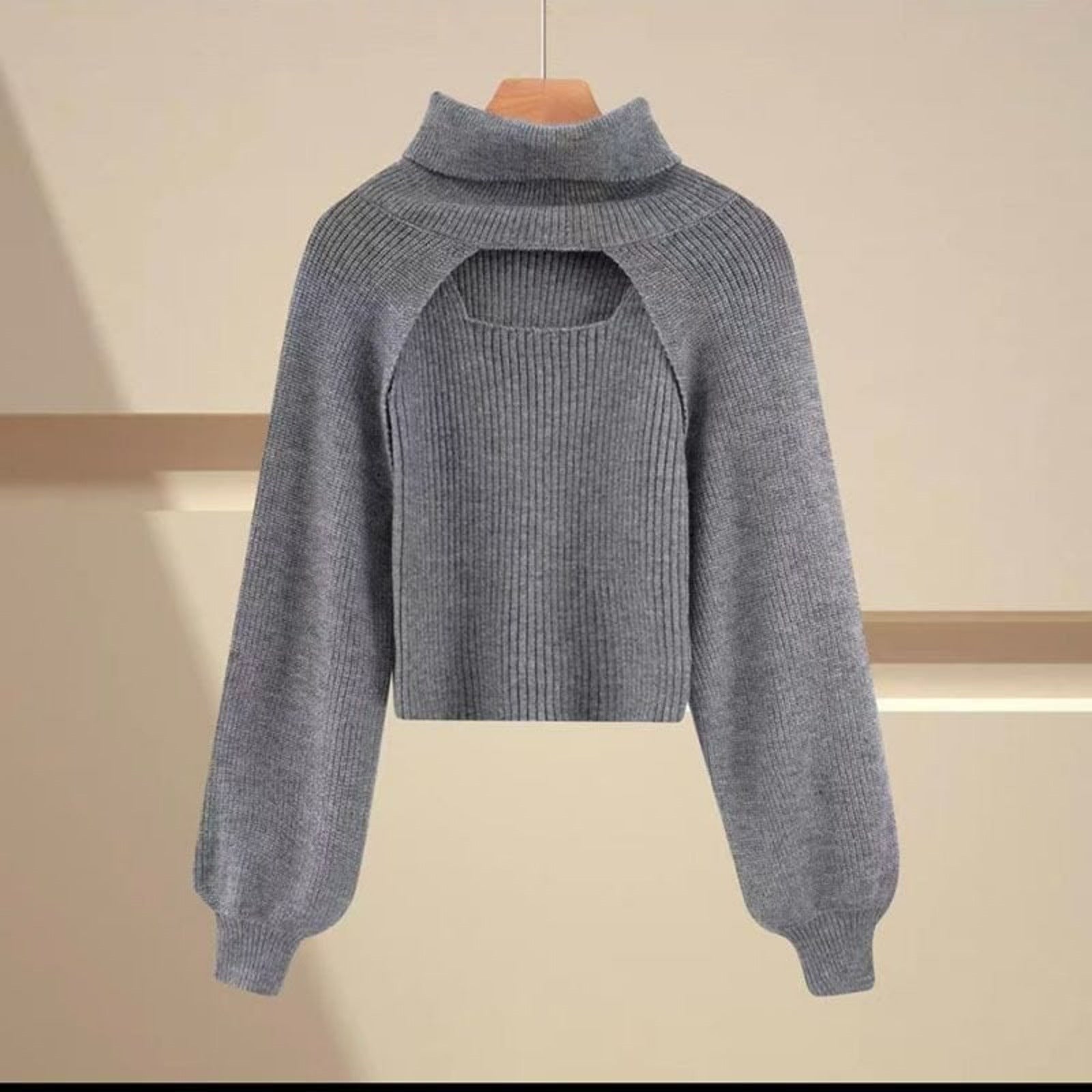 This two-piece ensemble combines stylish design and cozy warmth, perfect for winter wear. The set includes a full-sleeved top with a knitted woolen construction. The accompanying inner is a sleeveless bodycon.