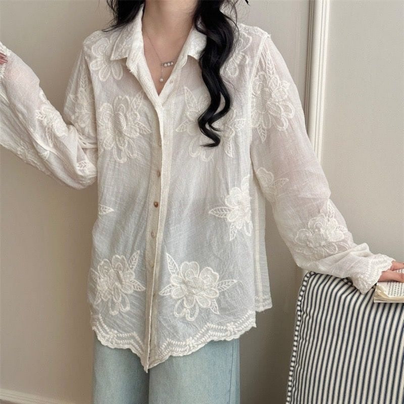 Add effortless elegance to your wardrobe with our Ivory Bloom Embroidery Shirt. Crafted from breathable fabric, this shirt features delicate floral embroidery and scalloped edges that bring a touch of feminine charm. The relaxed fit and full sleeves make it versatile for both casual outings and semi-formal occasions. Pair it with jeans for a chic everyday look or layer it over trousers for a refined style.