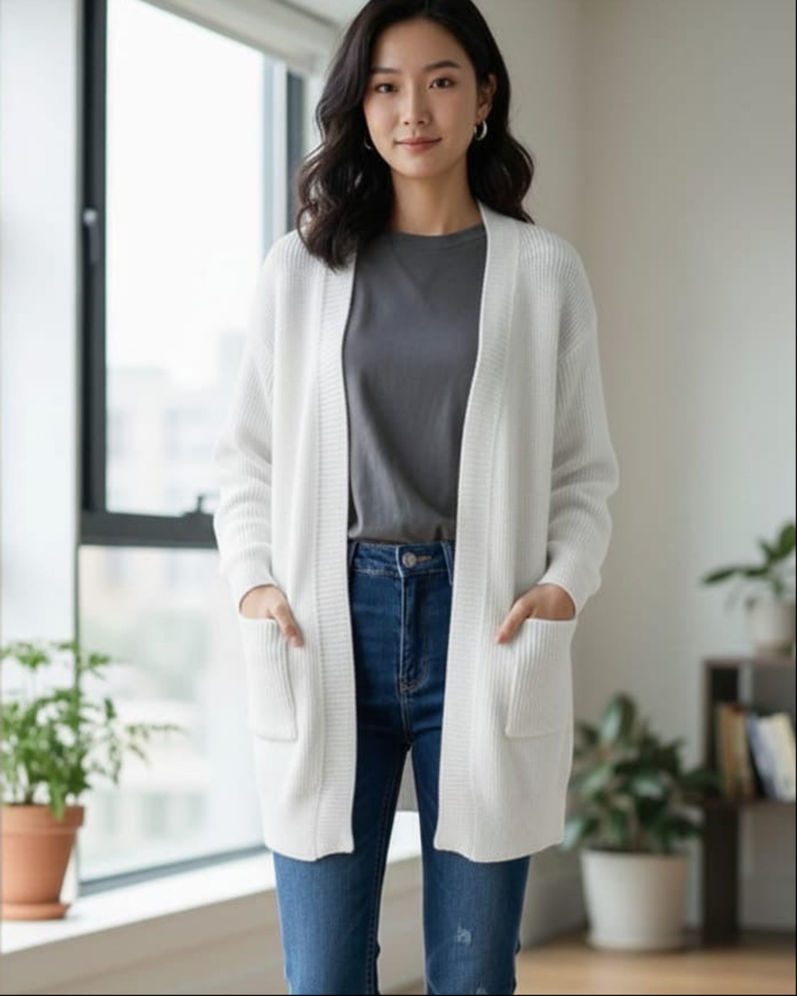 Stay cozy and stylish with our Oversized Ribbed Knit Cardigan. Features a relaxed, open-front design, two pockets, and five essential colors (Mustard, Black, Navy, White, Ivory ). Shop now!