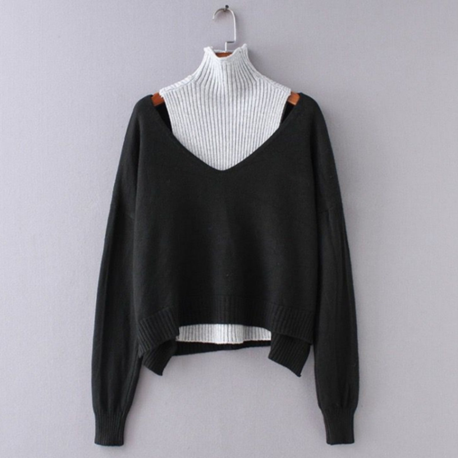 This two-piece ensemble combines stylish design and cozy warmth, perfect for winter wear. The set includes a full-sleeved , deep-V neck top with a knitted woolen construction. The accompanying inner is a sleeveless bodycon with a high neckline.