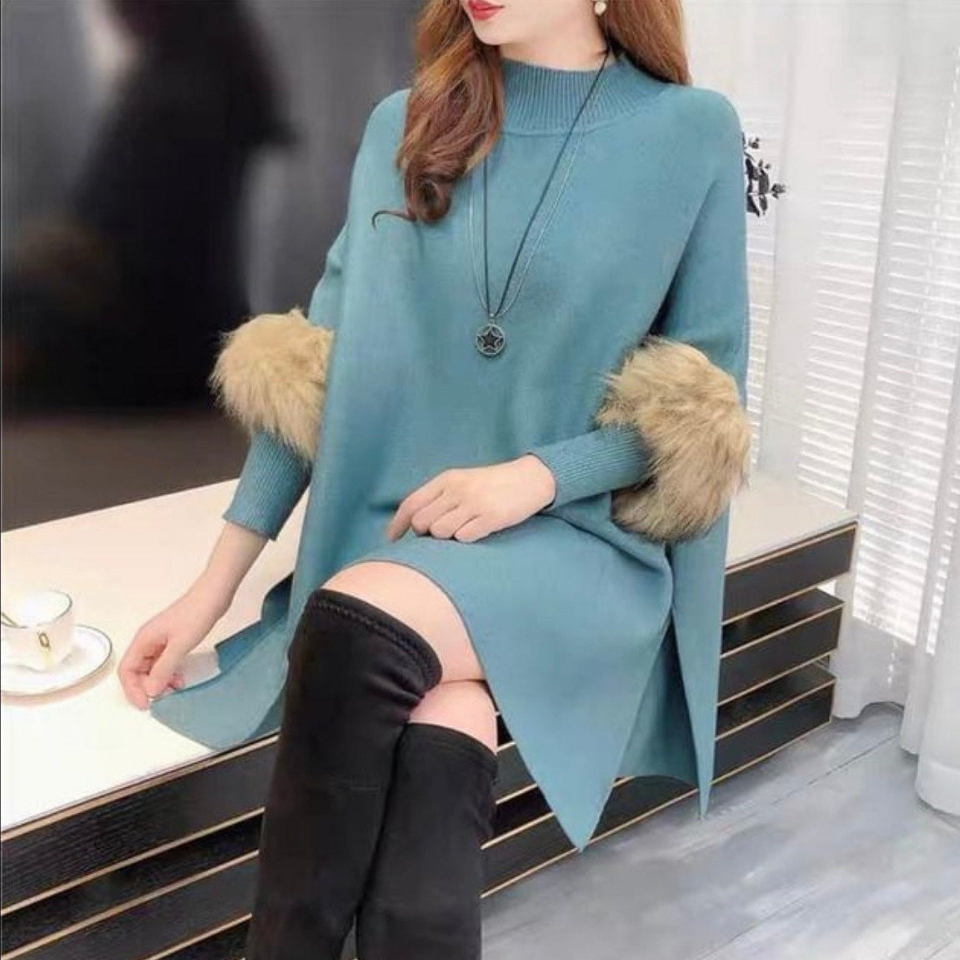 This season's must-have fashion accessory, Zenim Luxury Fur Capes are available in all the latest shades. Their high neck pattern with side slit design offers a truly stylish look, and the decorative faux fur flares on the sleeves create an eye-catching statement. Knitted fabric provides all-day comfort.